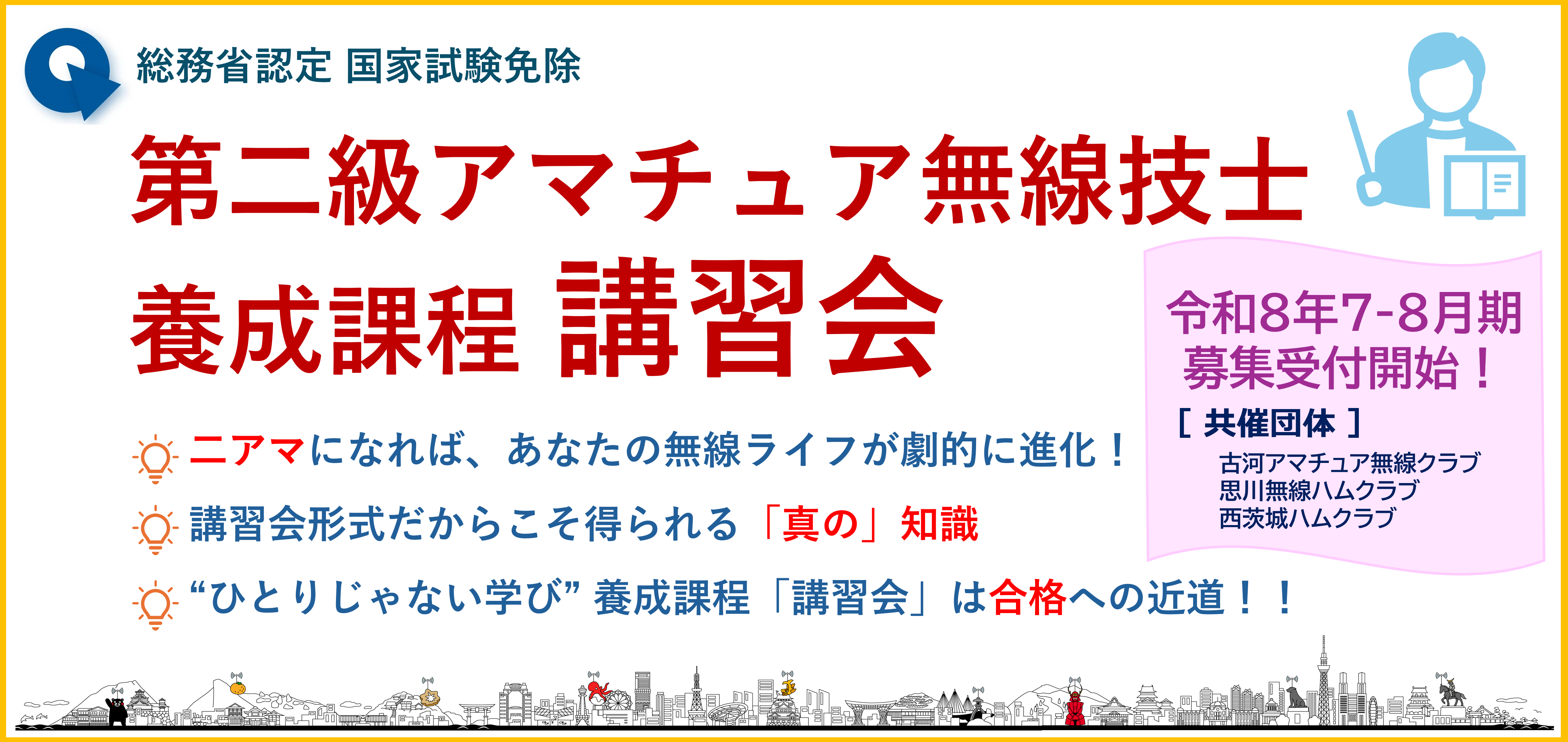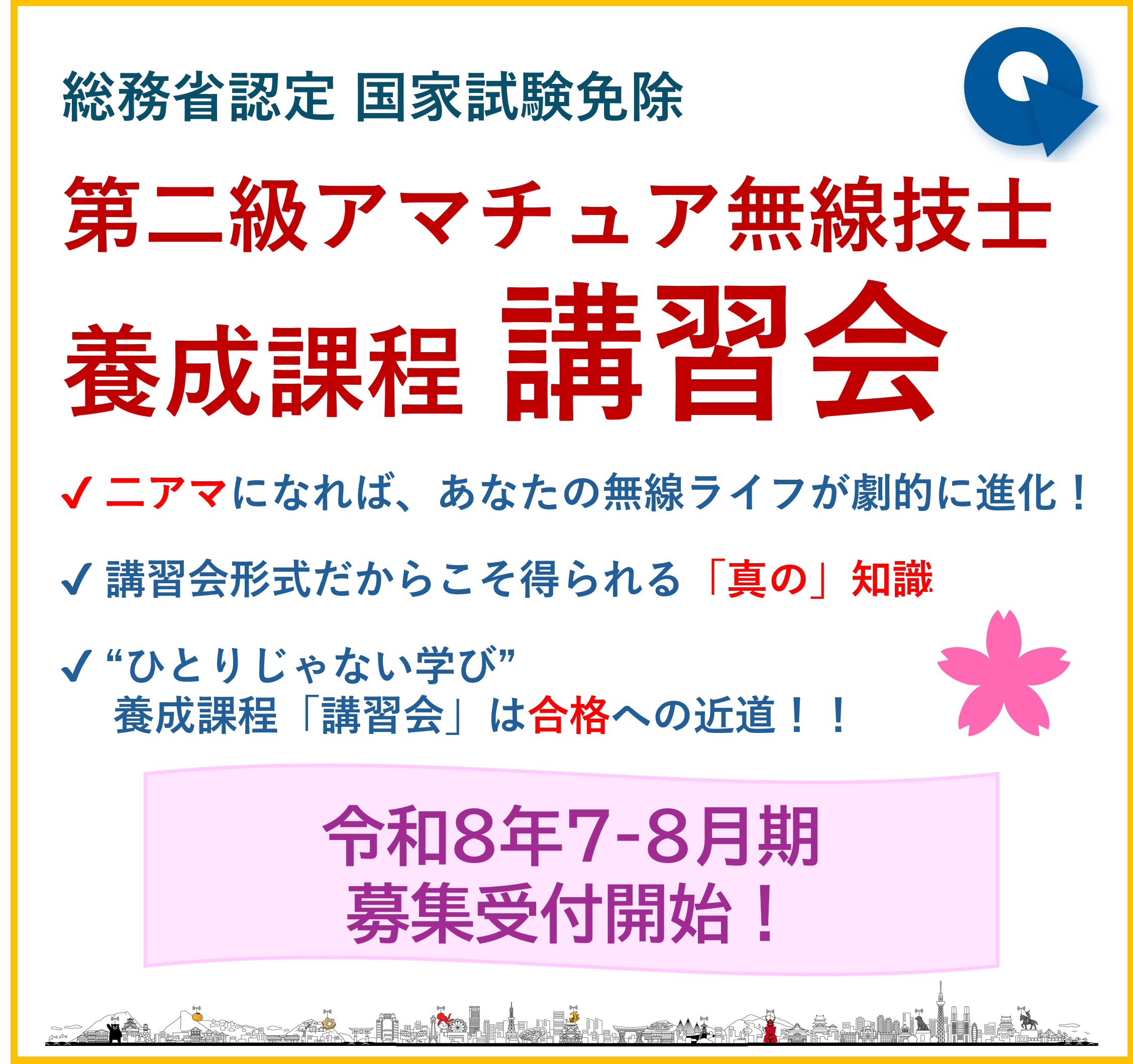 2026年1月より、第二級アマチュア無線技士「養成課程」を完全講習会形式として開講いたします。